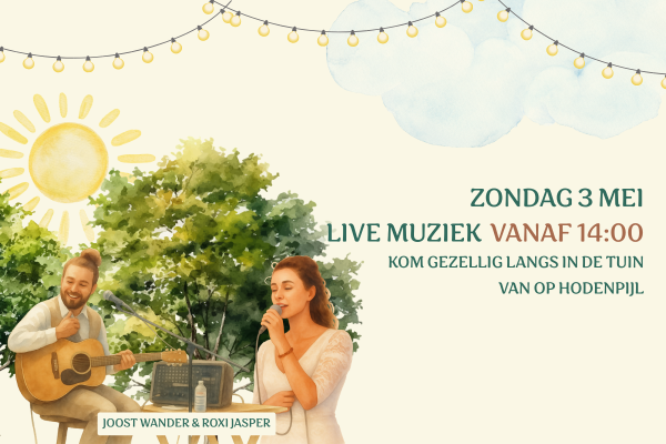 Vanaf 14.00 uur kun je genieten van live muziek van Joost Wander & Roxi Jasper, een gezellige sfeer en hopelijk een lekker zonnetje.